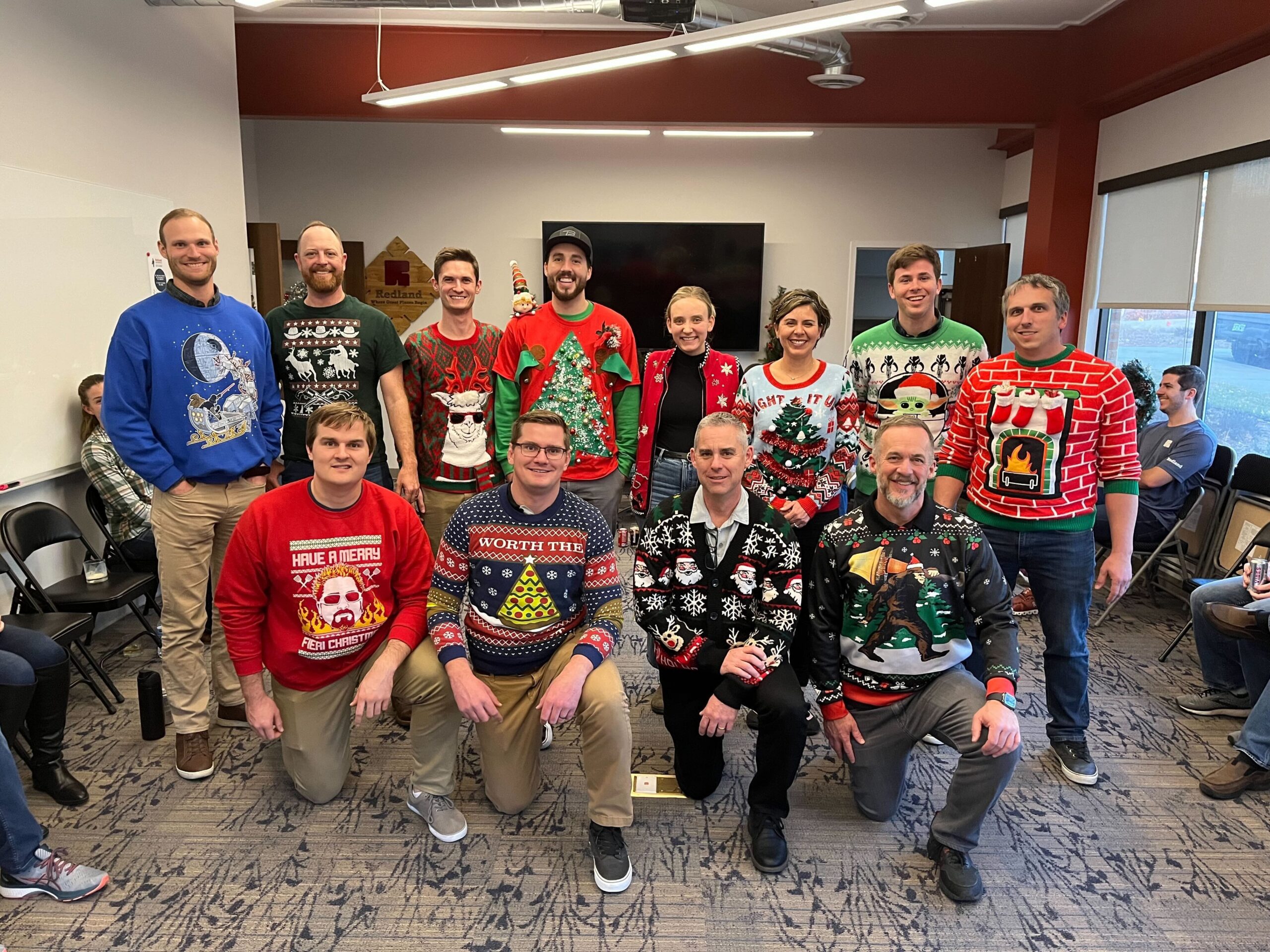 It’s beginning to look a lot like Christmas at Redland HQ, and we sure know how to celebrate the holiday season! The week before Christmas, Redland associates gather for an end-of-year staff meeting, followed by a traditional White Elephant exchange and lunch. Catered by our very own skilled Redland chefs, the lunch took on the theme of a “Christmas BBQ.” In addition, an ugly Christmas sweater competition was adopted for this party.