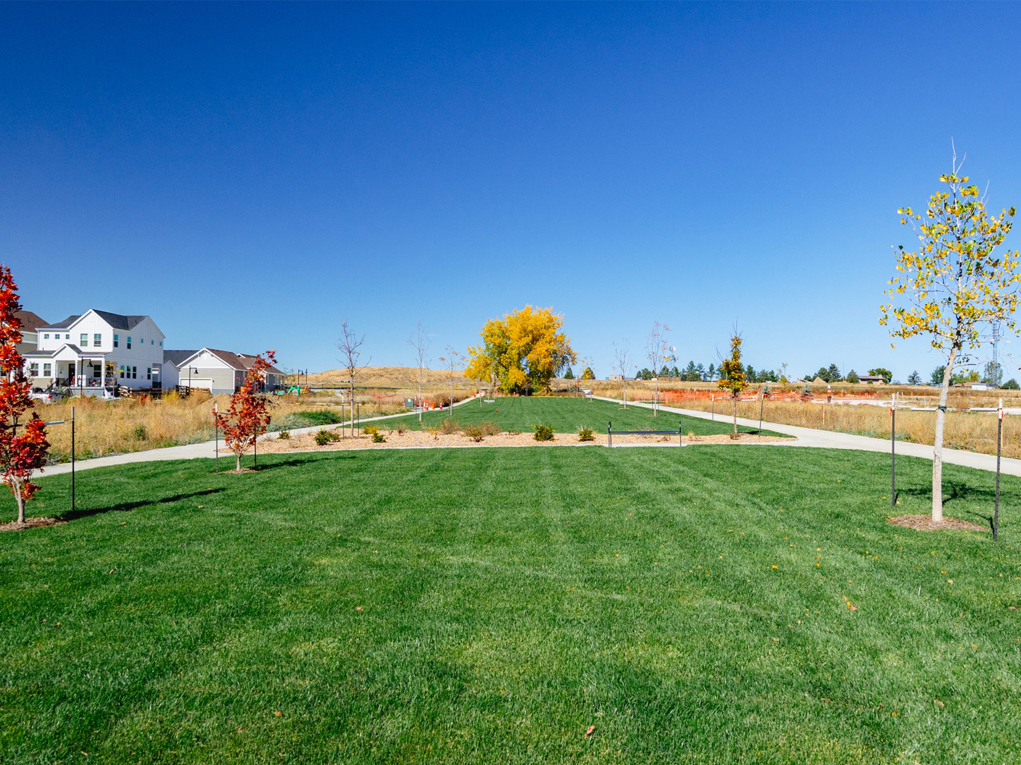 The neighborhood is designed with several unique enclaves that transition from lower density single-family homes along the existing Aspen Creek neighborhood to higher density urban townhomes along the active Dillon Road corridor. Dillon Pointe includes a wide range of housing types — from semi-custom homes on larger lots to single-family detached and alley-loaded homes, as well as multiple townhome products, including deed-restricted affordable units. The neighborhood open space features trail corridors, pocket parks, and a central neighborhood park woven throughout the site. The central park preserves an existing pond and mature cottonwood trees and acts as the primary gathering space for residents. Landscape planting incorporates Butterfly Pavilion and Botanic Gardens guidance, promoting healthy habitats and connectivity for native pollinators.