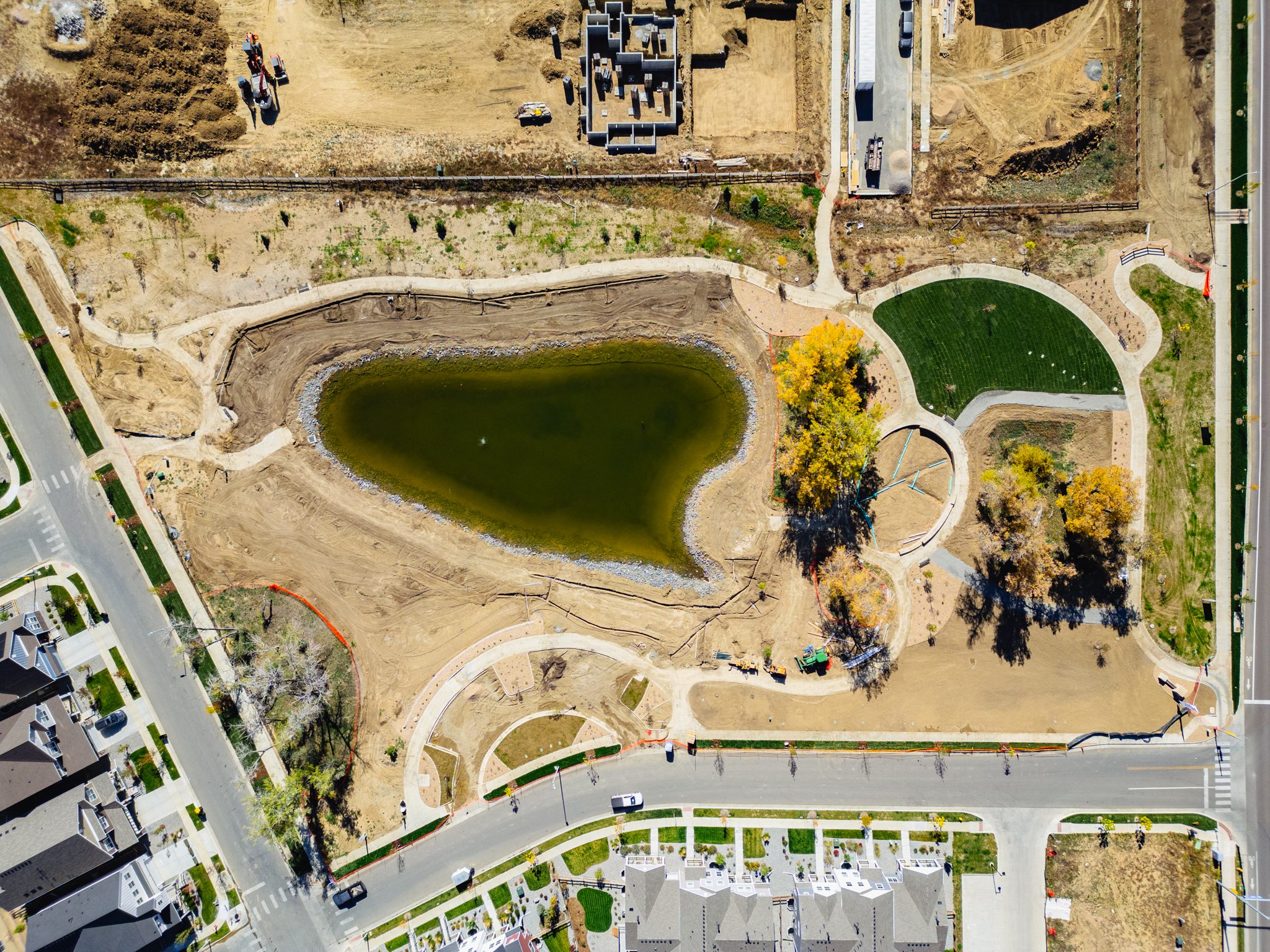 The family who owned the land engaged Redland to provide Land Planning, Civil Engineering, and Landscape Architecture services. Redland led planning, entitlement, and site design — addressing significant grade changes, the historic Farmers Reservoir and Irrigation Company (FRICO) irrigation ditch, and wetlands through targeted solutions, including lining the ditch to manage drainage and protect downstream conditions. Redland also supported rezoning and comprehensive plan amendments to allow a small commercial parcel at a prominent corner. Together, this work established a neighborhood framework that integrates housing diversity, affordability requirements, environmental considerations, and compatibility with surrounding development.
